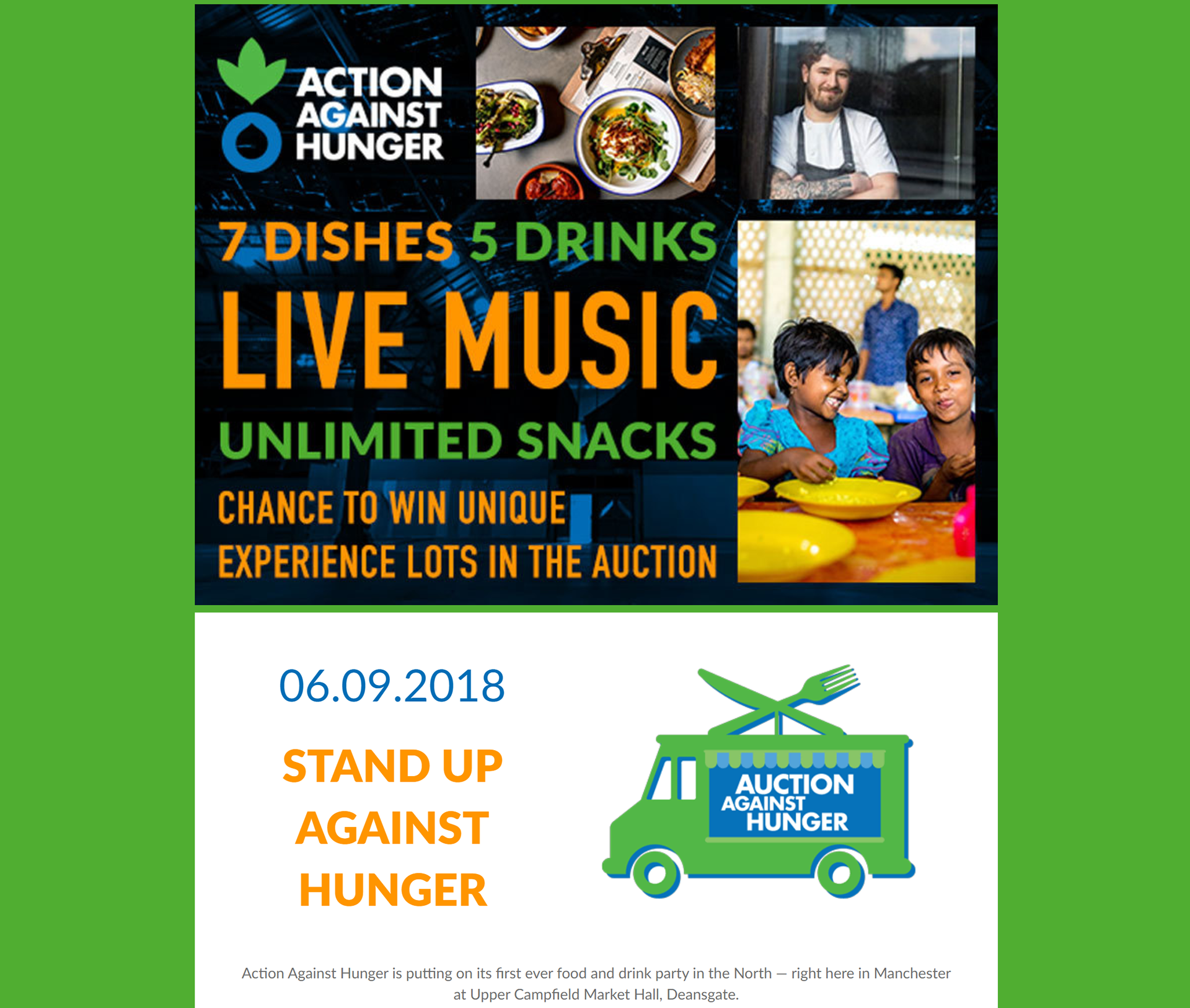 Confidentials teamed up with Action Against Hunger to bring the Auction Against Hunger event to Manchester's Upper Campfield Market. I created marketing content for the confidentials.com site. The event was a big success with approx 500 attendees.